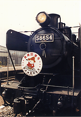 機関車は、熊本と宮地の間を走らせていた「あそBOY」の8620型58654号機関車。