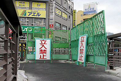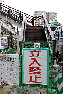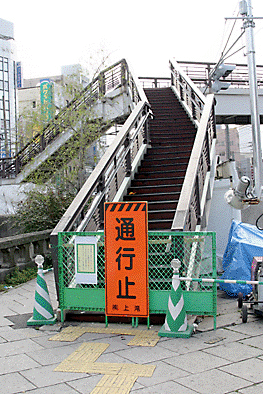 8日(木)の昼間です。江戸町、コンビニ側の階段が撤去されていました。