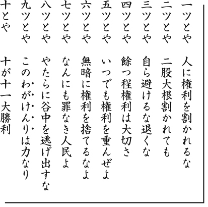 「九ツとや」に続く「わがけんり」には