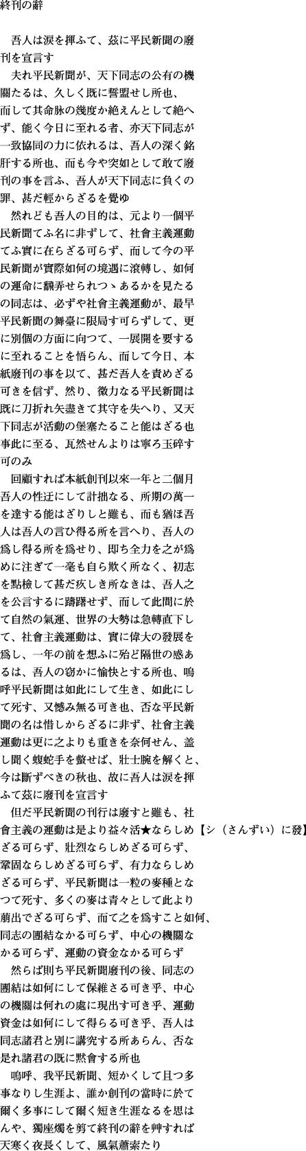 明治38年1月29日『平民新聞(週刊)』第64号1ページ