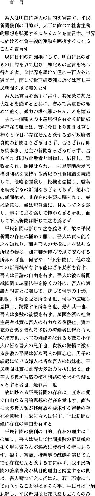 明治40年1月15日『平民新聞(日刊)』第1号1ページ