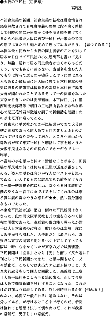 明治40年6月1日『大阪平民新聞(のち日本平民新聞)』第1号11ページ