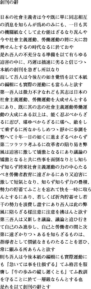 明治40年6月2日『社会新聞』第1号1ページ