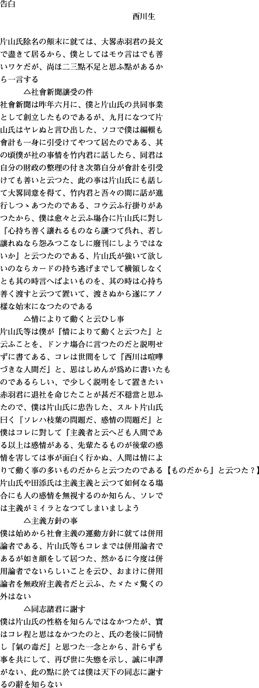 明治41年3月15日『東京社会新聞』第1号5ページ