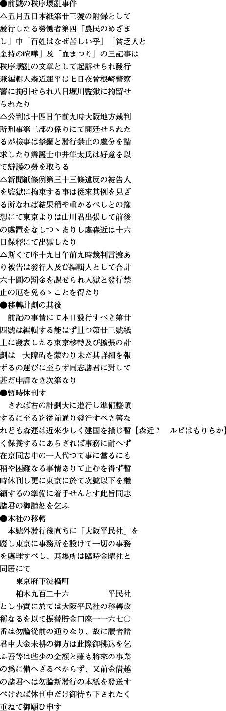 明治41年5月20日『日本平民新聞(旧大阪平民新聞)』号外